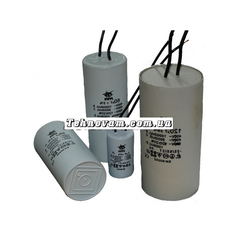 Під'єднання конденсатора через дроти. Діаметр — 30 мм, висота — 60 міліметрів.